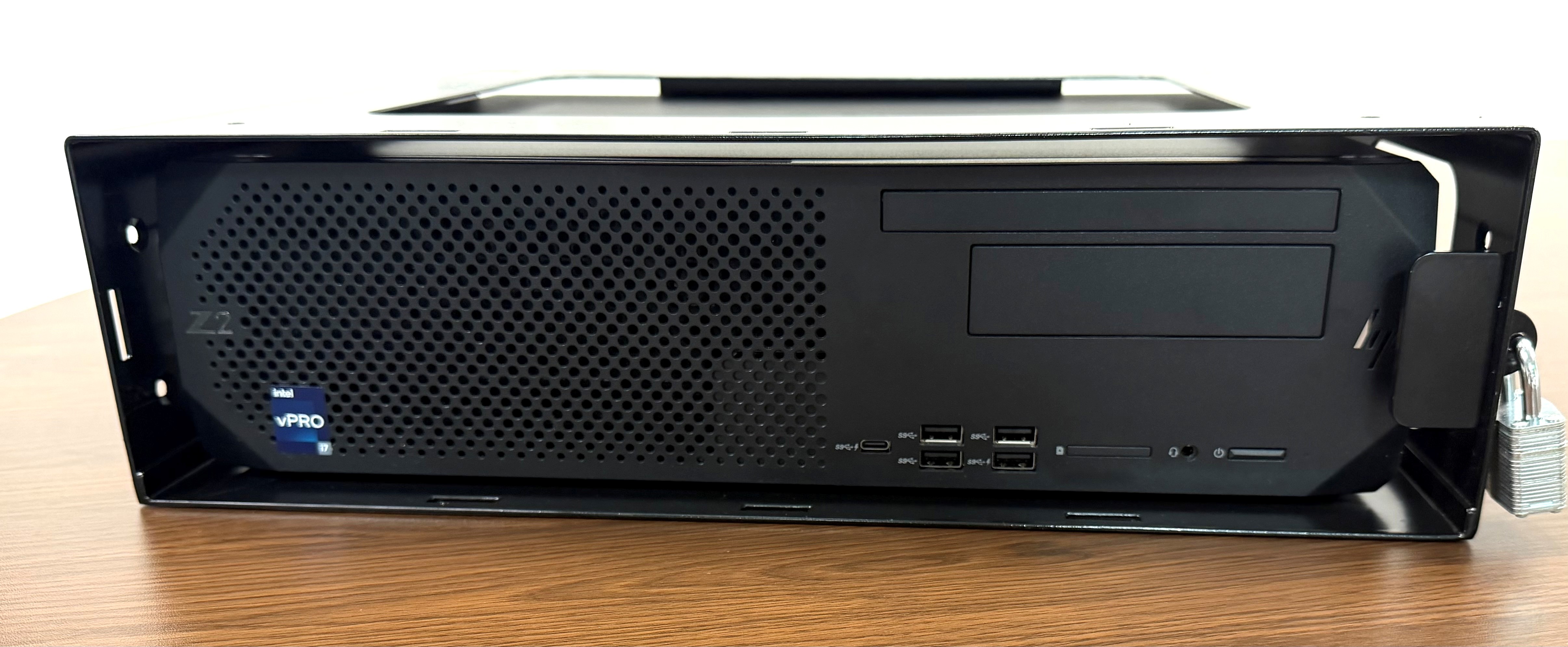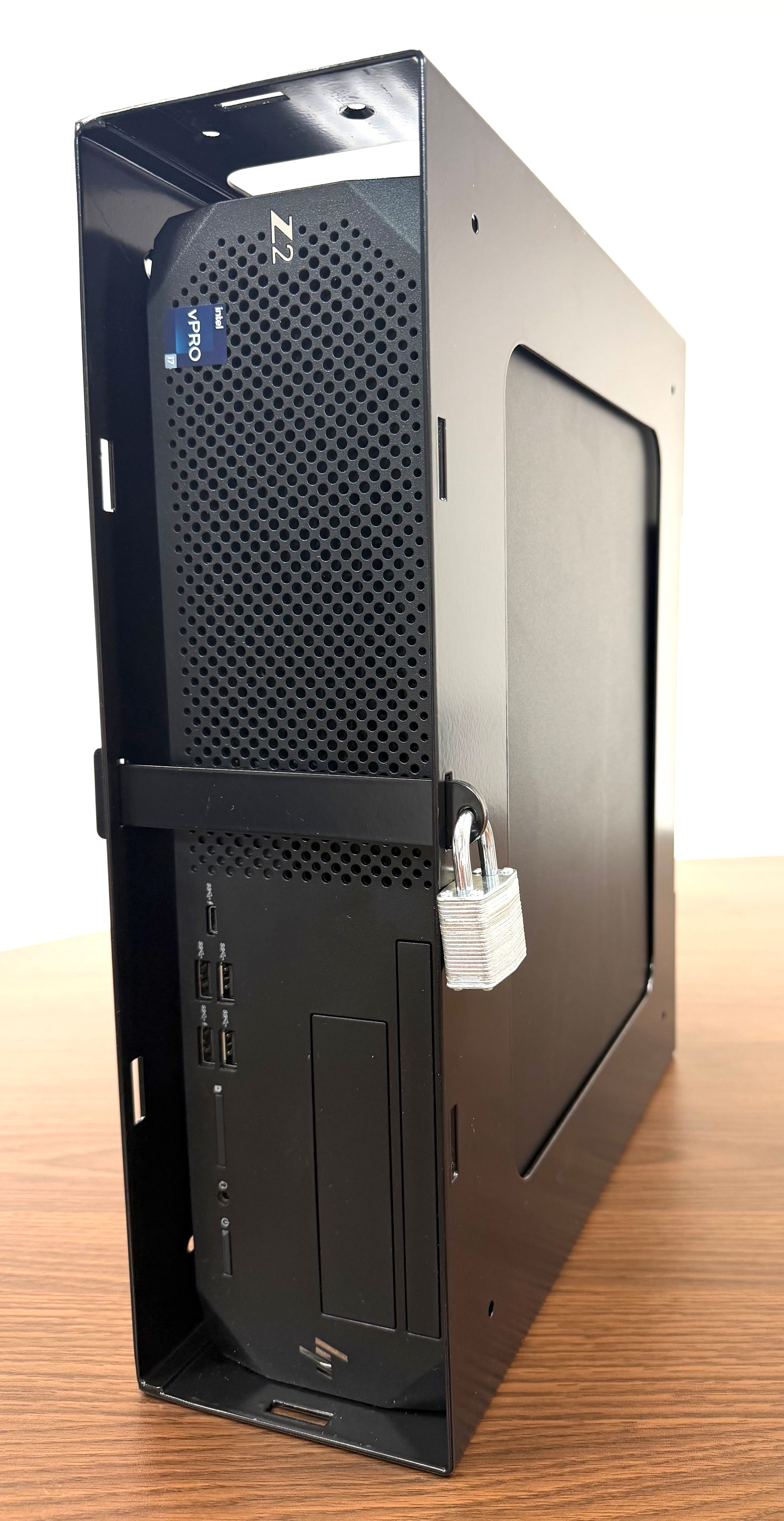 Core-Security Ltd were recently approached to come up with a solution that allows the HP Z2 Gen9 SFF Desktop PC to be securely mounted. At the time it was unsure if they required Tower or Desktop version, so Core-Security Ltd, designed a cage to cover both options.